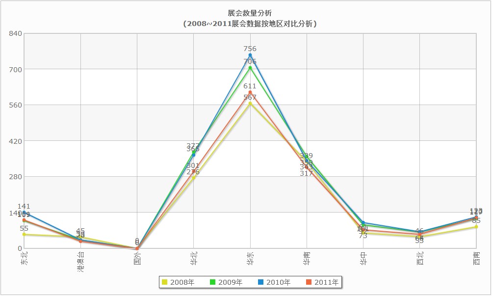 中國展會按區(qū)域的統(tǒng)計