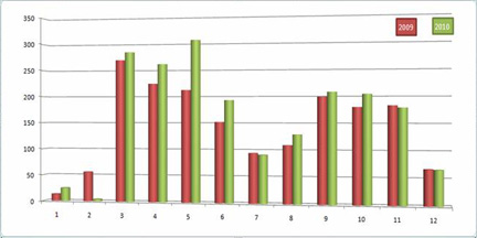 接下來(lái),我們看看2010年哪些日子最受歡迎: