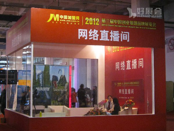 2012年2月18日,“2012第三屆中國創業加盟品牌展覽會”在中國國際展覽中心(北京三元橋)隆重召開。本次展會匯聚了18大行業等眾多知名品牌參展,吸引了數萬投資創業者前來參觀。而展覽會的網絡直播間更是矗立在展會現場,格外顯眼。