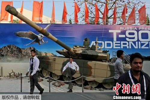 2012年3月30日,印度首都新德里,第七屆印度國防展舉行,共有90多個國家參加了此次展覽。印度國防展為亞洲規模最大的國防展覽。(來源:中新網)