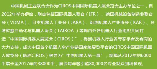 一大亮點是大會聯合全球四大機器人展之一,最早最專業展覽——中國國際機器人展覽會同時同場,展覽總面積達56000平米,全世界參觀人數預計將超過100000人,將打造中國最具規模和最具影響力的首屈一指的全球無人系統盛會。