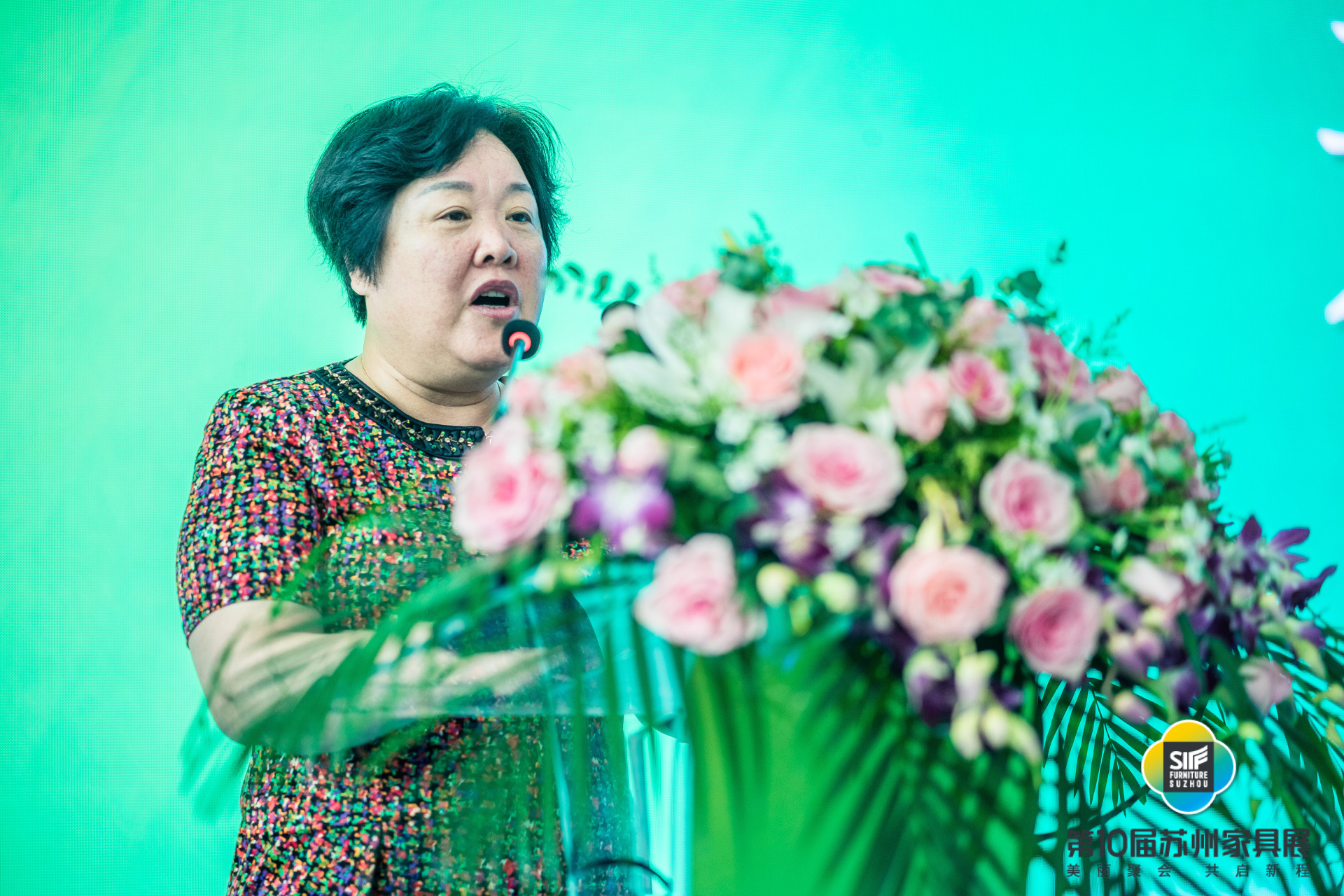 江蘇省家具行業(yè)協(xié)會執(zhí)行會長馮建華女士上臺致辭,首先表達了對全國家具人蒞臨江蘇的謝意,肯定了蘇州家具展對江蘇乃至華東家具發(fā)展的重要作用。馮會長表示,希望江蘇省家具行業(yè)人,充分利用長三角產業(yè)集群的優(yōu)勢,擴大競爭與合作效應,建設區(qū)域品牌,提高整體競爭力,助力產業(yè)升級。最后馮會長也表達了對第10屆蘇州家具展的美好祝愿!