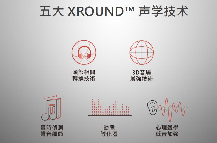 過往的家庭劇院往往需要龐大的空間和不斐的預(yù)算才能夠裝設(shè),同時無法隨身連接手機(jī)帶著走,隨時隨地體驗聲音帶來的深層感動。XROUND 演算法突破時間與空間種種限制,透過獨家音訊演算技術(shù)使普通雙聲道喇叭或耳機(jī)能夠擁有 360 度的環(huán)繞音效體驗感,并同時運用智慧演算功能以十萬分之秒的速度高速更新運算,搭配心理聲學(xué)低頻加強(qiáng)與智慧動態(tài)等化器的技術(shù),表達(dá)聲音更多的細(xì)節(jié),在電影和游戲中,提供使用者更豐富的臨場體驗感;不論在地鐵,公交,公寓,宿舍或是騎著單車,都能無縫接軌專屬的體驗。