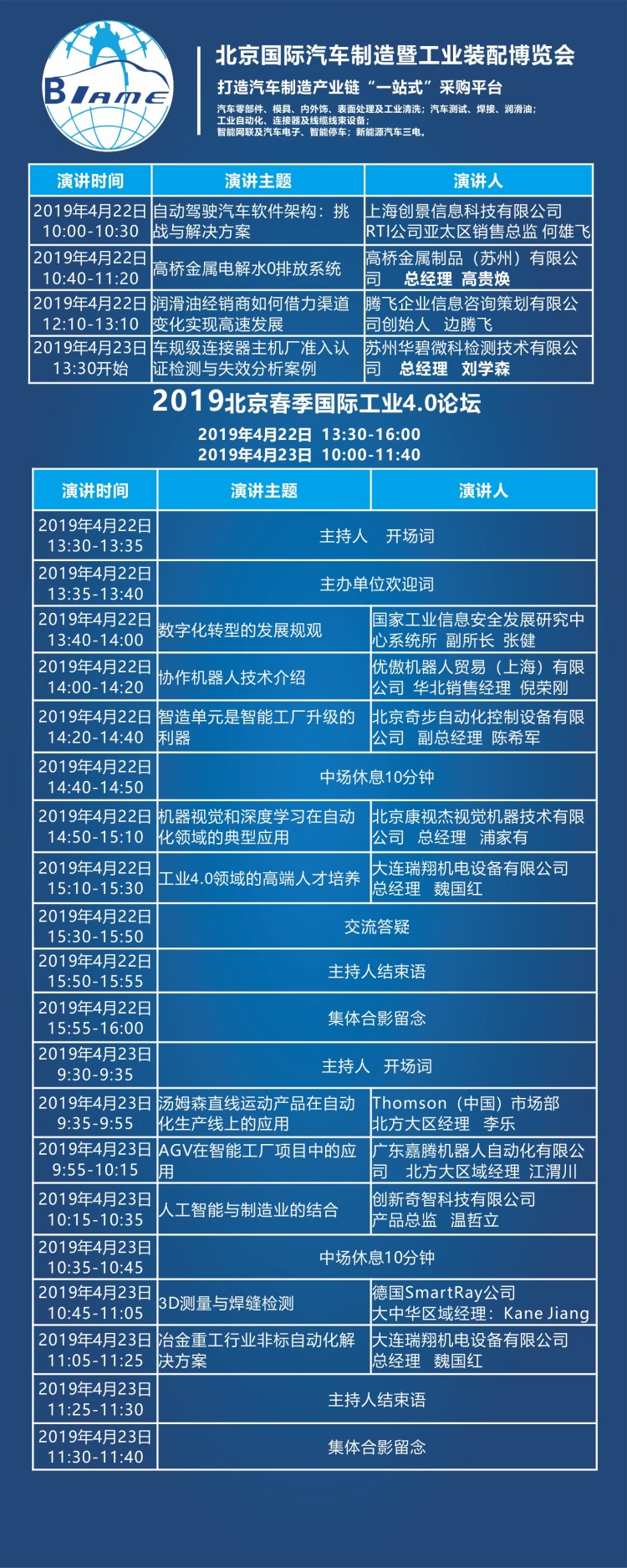 北京國際汽車制造及工業裝配博覽會于4月22至24日在北京中國國際展覽中心恭迎來自世界各地的業內人士,展示應用領域涵蓋汽車工程、汽車零部件、汽車模具、表面處理及工業清洗、汽車測試、焊接、潤滑油、工業自動化裝備、連接器及線纜線束設備、智能網聯汽車電子、智能停車、新能源汽車三電等,描繪汽車智能制造的未來藍圖。覆蓋汽車制造整個產業鏈,匯聚近500家參展商,預計吸引超過30,000名來自45個國家和地區的專業觀眾前來參觀。