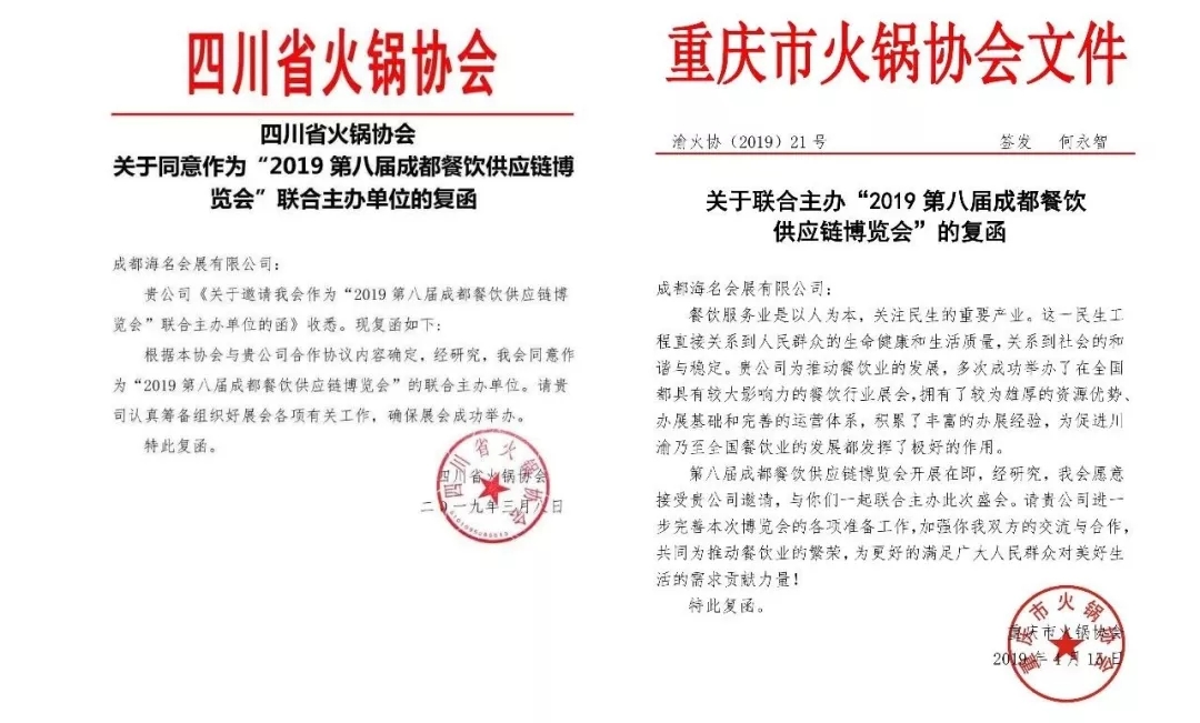 【四川省火鍋協會、重慶市火鍋協會 復函】