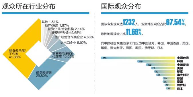 2019年,觀眾人數預計將突破35000人,來自健身俱樂部/工作室、經銷代理商、進出口企業、康復/養老機構、政府機構等涵蓋大健康領域的優質專業觀眾和健身愛好者將前來洽談、采購。