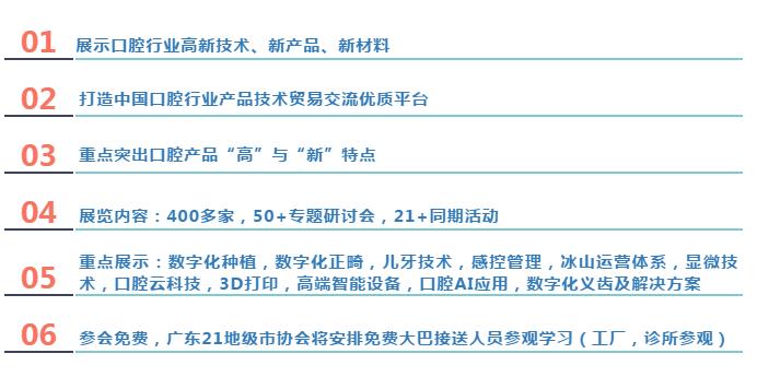 深圳亞太口腔醫(yī)學高新技術(shù)博覽會(SDHE),將打造成為國內(nèi)外極具影響力的口腔高新技術(shù)盛會,融高新技術(shù)展示、高峰論壇、學術(shù)交流、共享合作于一體。大會主題:“創(chuàng)新科技引領(lǐng)口腔醫(yī)學新發(fā)展”。研討會將含:數(shù)字化種植、數(shù)字化正畸、兒牙技術(shù)、數(shù)字化修復、牙周、牙體牙髓、感控管理、診所運營科學體系、顯微技術(shù)、口腔云科技、3D打印、口腔AI應用、數(shù)字化義齒及解決方案等30+專題,100多位口腔專家學者將作精彩演講。歡迎全國口腔醫(yī)生參會參觀,為推動與發(fā)展口腔醫(yī)療行業(yè)共襄盛舉!