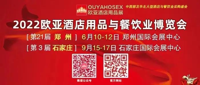 第21屆(鄭州)歐亞酒店用品與餐飲業博覽會將于2022年6月10-12日在鄭州國際會展中心舉辦;第3屆(石家莊)歐亞酒店用品與餐飲業博覽會將于2022年9月15-17日在石家莊國際會展中心舉辦。