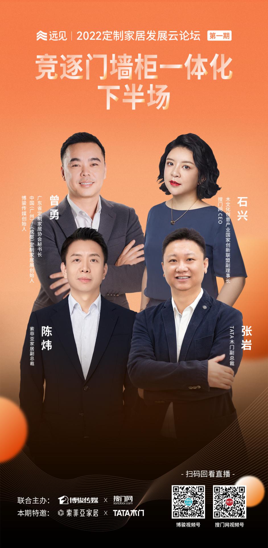 5月23日,博駿傳媒聯(lián)合搜門網(wǎng)舉辦“遠見·2022定制家居發(fā)展云論壇”,首期聚焦 “整家一體定制”和“門墻柜一體化”話題,邀請定制和木門行業(yè)的領(lǐng)軍企業(yè)代表——索菲亞、TATA木門進行對話。