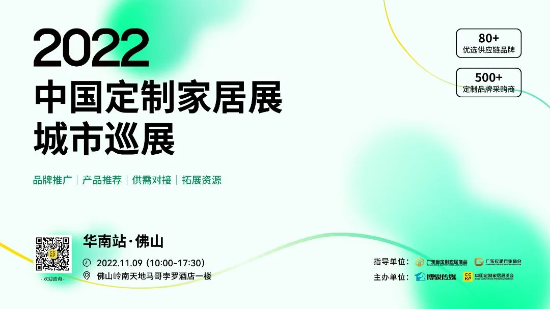 由廣東省定制家居協會、廣東衣柜行業協會指導,中國廣州/成都定制家居展、博駿傳媒聯合全國各地商協會主辦的“2022中國定制家居展·城市巡展”,將于11月9日首次落地華南站在佛山·嶺南天地馬哥孛羅酒店舉行,本次巡展將以粵港澳大灣區為中心,輻射廣州、佛山、深圳、東莞、中山等中心城市。