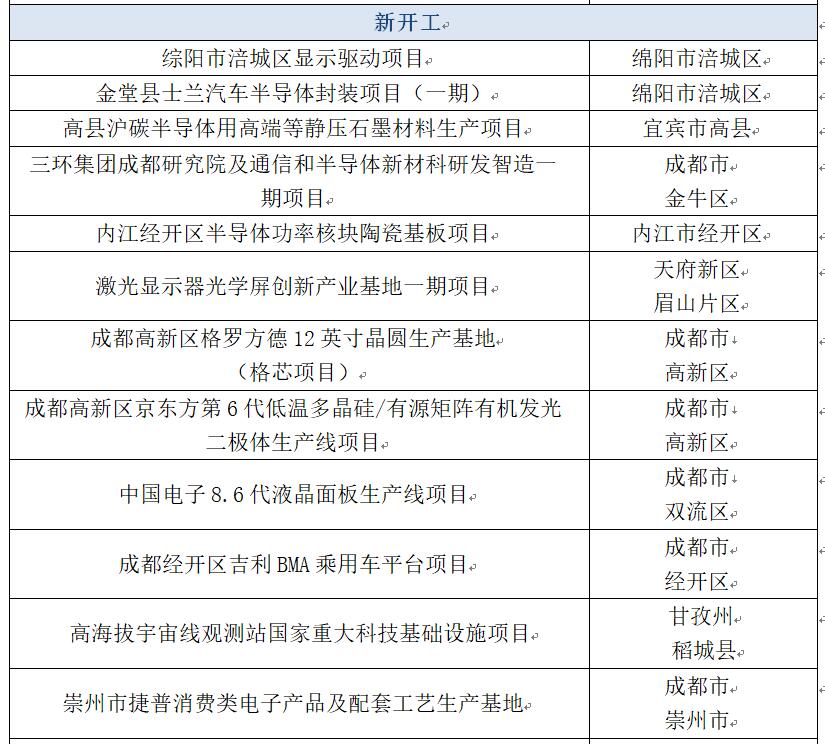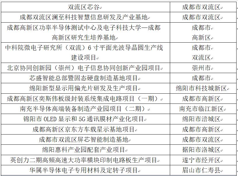 2023年1月,四川省發展改革委公布2023年四川省重點項目名單,其中,成都高新區奕斯偉板級封裝系統集成電路項目(一期)、成都市雙流區屏芯智能制造基地等項目在列。