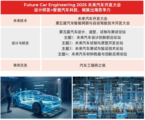 Future Car Engineering 2025未來汽車開發大會將聚焦智能網聯與自動駕駛技術、汽車設計、造型、試制與測試等核心的前沿技術與解決方案,匯聚全球汽車設計研發領域的精英,打造一場技術、生態、商業深度融合的國際盛會,預計將吸引1,000名中國及500名來自