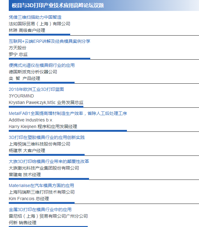 3D打印高峰論壇,由行業領先企業和研究機構主講,揭示增材制造行業的應用、發展產品和研究成果。不同題目匯聚環球行業智慧,擴闊業者眼界,豐富與會者的參觀體驗。論壇題目排題搶先看: