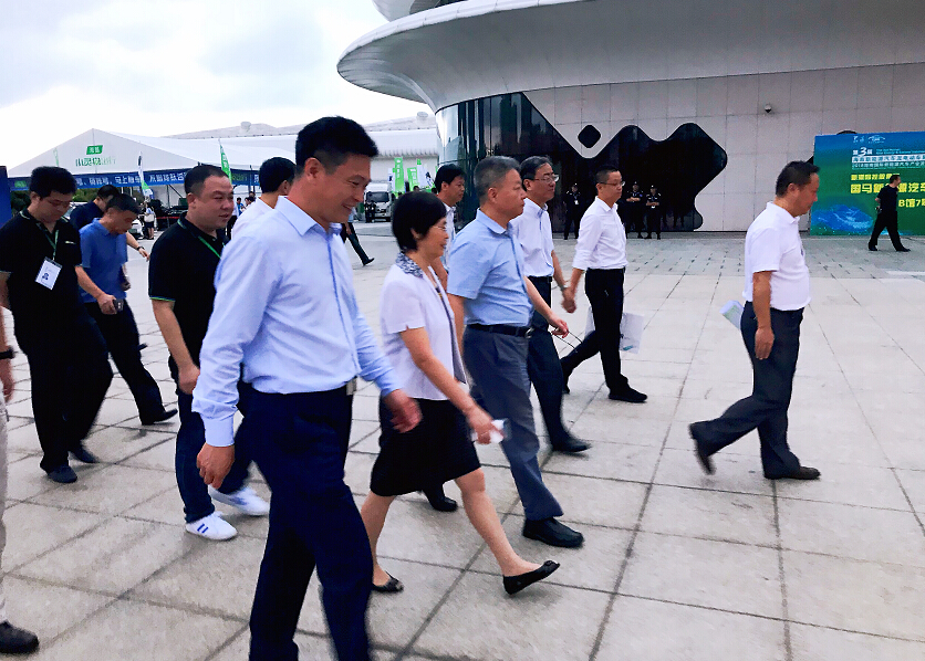 10月19日上午,海南省人民政府副省長沈丹陽一行參觀野馬新能源展臺