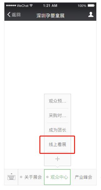 一.關(guān)注公眾號【深圳孕嬰童展】,點(diǎn)擊菜單-觀眾中心-線上看展