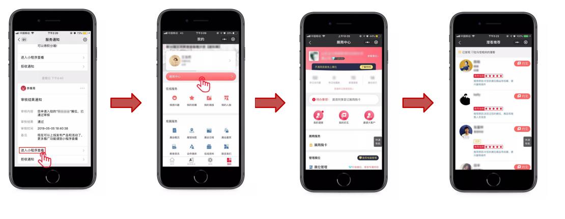 ·收到系統(tǒng)審核通知后,點(diǎn)擊“進(jìn)入小程序查看”進(jìn)入展商中心;