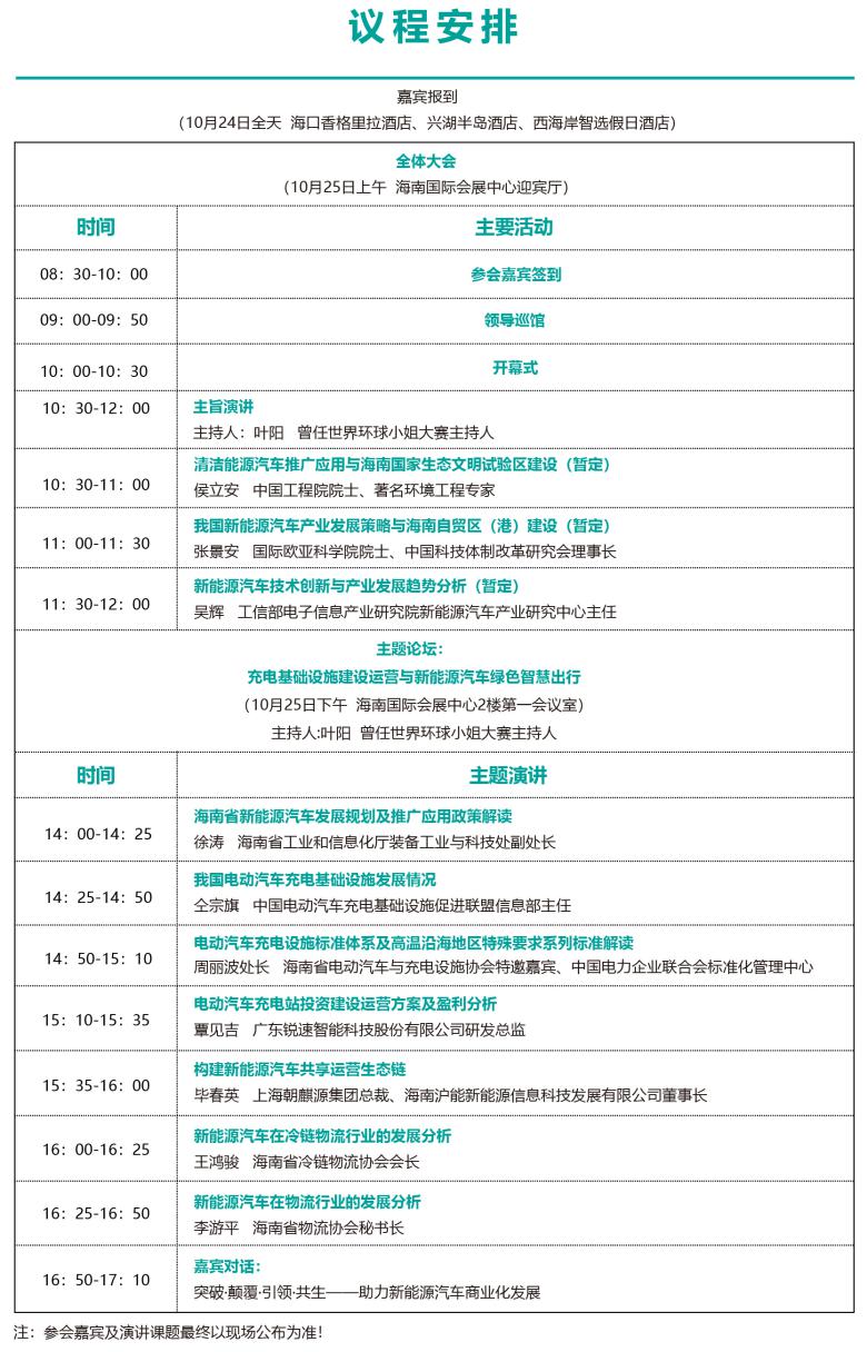為培育新能源汽車消費市場,促進清潔能源汽車推廣應用和新能源汽車全產業鏈發展,助力海南國家生態文明試驗區建設,在海口市人民政府和海南省工業和信息化廳、海南省商務廳、海南省發展和改革委員會、海南省交通運輸廳、海南省科學技術廳、海南省貿促會等單位的支持指導下,由振威展覽股份主辦,海口市商務局、海口市發展和改革委員會、海口市科學技術工業信息化局、海南省電動汽車與充電設施協會、廣東省充電設施協會、大連綠易行實業集團有限公司等單位協辦,成都振威世展展覽有限公司承辦的2019海南國際新能源汽車產業發展大會,定于10月25日在海南國際會展中心舉辦。