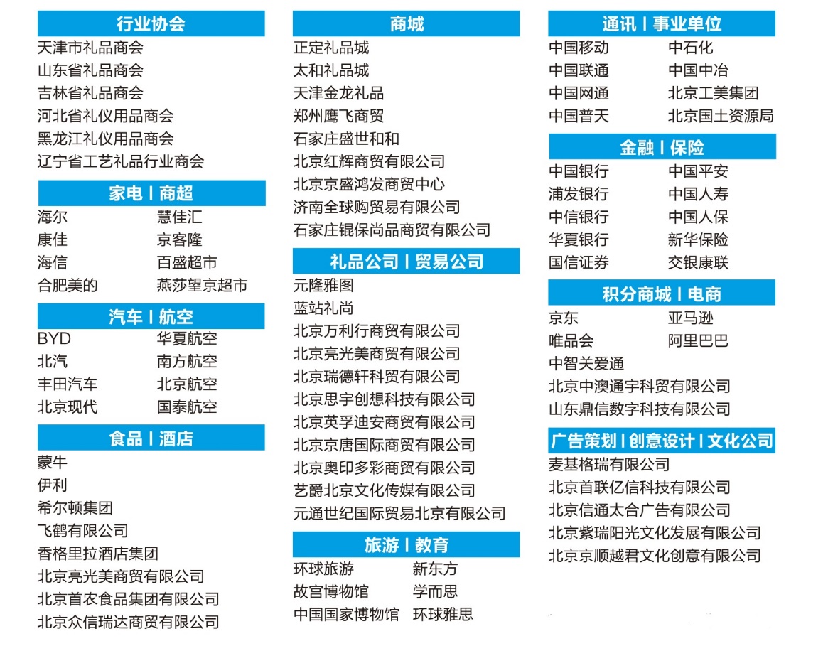 北京禮品展20余年來深耕買家市場,積累了百萬的專業買家數據,廣受北方北方專業買家認可。本屆展會也吸引了大量來自百貨、電商、集團公司、禮品公司、代理商等專業買家慕名前來采購,如:豐田汽車、慧佳匯、京客隆、中國銀行、中信銀行、唯品會、亞馬遜、嘉士伯啤酒集團、飛鶴集團、新華書店、中國園林博物館、漢庭酒店集團等知名企業集團都將出席展會洽談采購。此外,天津、山東、吉林、河北、黑龍江、安徽、遼寧等北方各省市禮品協會,正定禮品城、太和禮品城、天津金龍禮品、鄭州飛鷹商貿、石家莊盛世和和等近百家市場、協會組團前來參觀采購,據初步統計,意向采購金額過億。