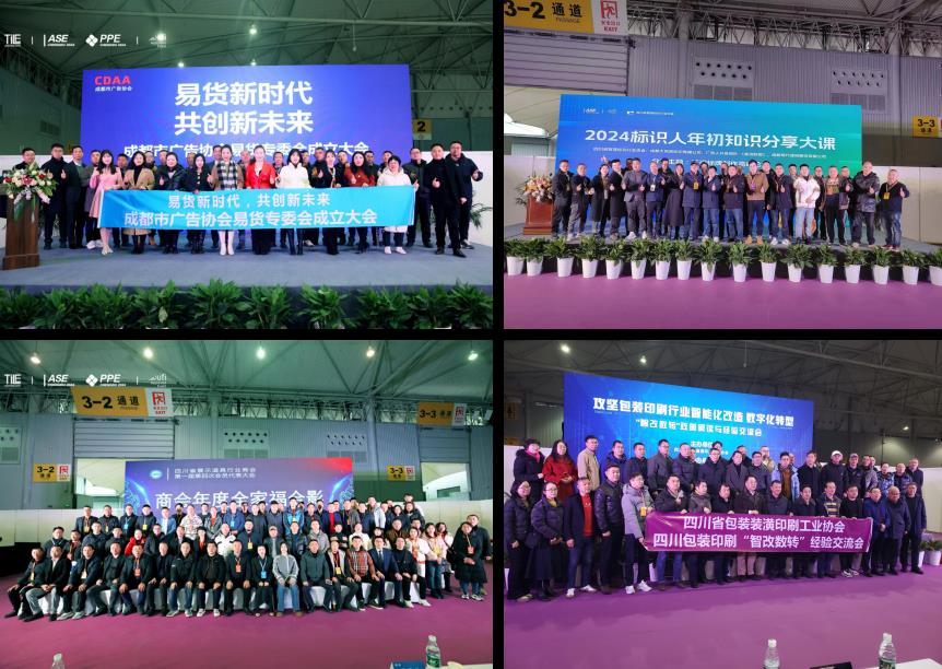 展會同期舉辦2024標識人年初知識分享大課、第三屆商展產業B2B集采大會西南綠色商業店裝與展陳高峰論壇、易貨新時代,共創新未來暨成都市廣告協會易貨專委會成立大會、攻堅包裝印刷行業智能化改造數字化轉型“智改數轉”政策解讀與經驗交流會等活動,特設2024成都印刷包裝精品展、2024商業店裝與展陳展兩個精品展示區。從行業政策、工藝解析、技術分享三個方面為廣大行業同仁帶來前沿思維碰撞、經典方案剖析,洞悉行業趨勢,引領產業變革,為更好地推動西南地區廣印行業發展貢獻力量。