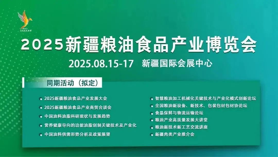 在政策紅利持續釋放、市場需求旺盛的背景下,2025 新疆糧油食品產業博覽會順勢而為,緊扣產業發展需求,致力于為行業搭建高質量交流平臺。展會將于 2025 年 8月15-17日 在新疆國際會展中心盛大啟幕,將全方位展現糧油食品產業的創新成果與發展活力。?